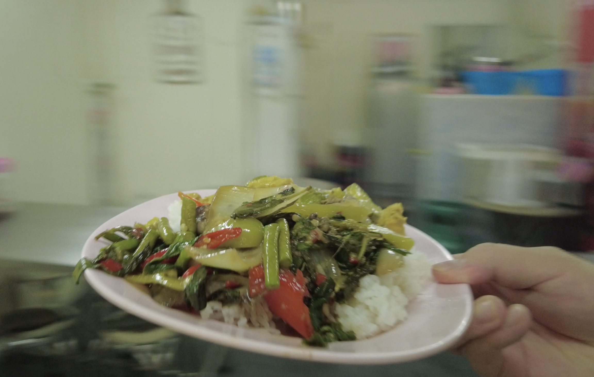 店内は細長く奥行きがあり、朝の通勤前に立ち寄るローカル客で賑わっています。スタッフの対応も非常に丁寧で、キッチン撮影にも快く応じてくれるほどフレンドリー。お茶はなんと無料で提供されるという嬉しいサービス付きです。