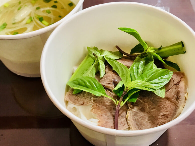 三日目の朝食は牛肉のフォーと乳酸菌飲料です。フォーはもちろん常温です。昼食は鯖の煮付け・高菜炒め・野菜スープ・ご飯・小豆のぜんざいです。